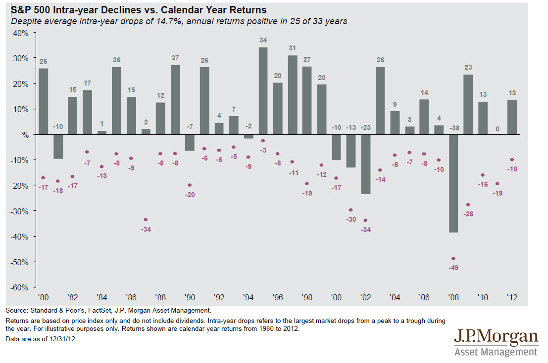 With the recent market rally there has been a lot of talk about the sustainability of this run up. It is important to always take a step back and keep things in perspective. When building an investment strategy, by definition, you should always consider protection first and promotion of growth second. As the risk appetite begins to increase keep the chart above in mind. The markets will generate an intra-year drop on average of 14.7%. This correction will happen in positive years and negative years but the big picture needs to be focused on keeping your strategy in check and avoiding speculation to get the best of you. At the end of the year riding all the highs of the market will not mean a much if you give it all back.