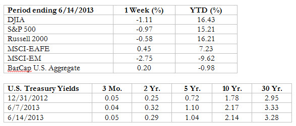 (+) The highest-profile economic release of the week, May retail sales, were a bit higher than expected with a gain of +0.6% versus a forecasted +0.4% (including seasonal adjustments that first lowered April retail sales from +0.5%, to -0.1%, then revised them upward again to +0.2%). ‘Core’ retail sales, which removes the more volatile components and is used by the government in GDP calculations for consumer expenditures, gained +0.3%, which was as expected. Overall, the report was fairly balanced, with contributions from ‘general merchandise’ and online sales, while electronics and apparel declined a bit. Contributing to the headline number were gains in autos/auto parts and building materials.