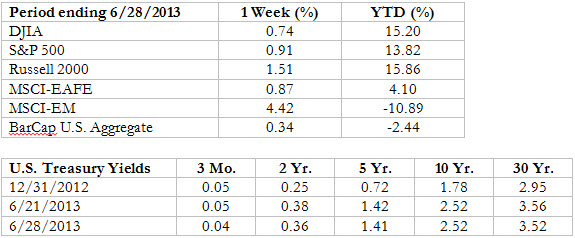 You had to assume the Fed would make an attempt to pull back on the prior week’s poorly-received/misunderstood communication. FOMC members make speeches quite often to groups in their districts, and around the country, and often use these forums to fine-tune Fed views that may need better elaboration. Last week, separate speeches by New York Fed President Dudley and San Francisco Fed President Williams centered around a theme of ‘hold on a minute’—in that current labor and economic growth trends were not robust enough yet to warrant an early exit from QE. In fact, per the comments, there is just as good of a chance of accommodation lasting longer than was implied by earlier Fed comments; and, market expectations for an early exit would be ‘quite out of sync’ with FOMC statements and participant views.