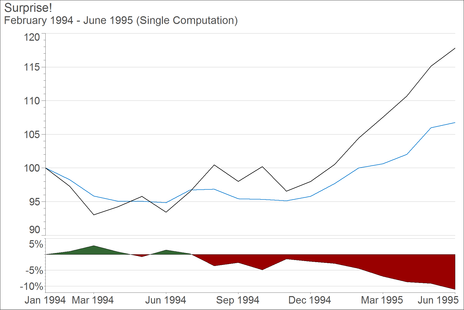 Surprise!: Coming out of the 1991 recession the Fed catches fixed income markets by surprise, raising rates quicker and higher than most investors were expecting. Rates rose from 3.25% to upwards of 6.0%.