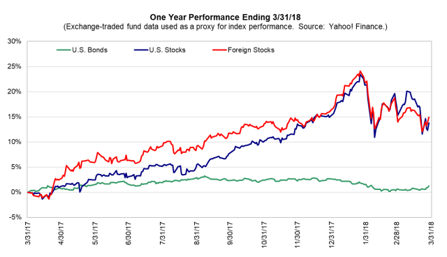What a difference a quarter can make! Last year, quarter after quarter passed with all news treated as good news and the turmoil of the day pushed aside as markets cheerfully climbed higher. This last quarter was a bit different with a decidedly less cheerful tone as markets soared in January, plunged in February and investors kept a wary eye nervously focused on the news of the day.
